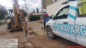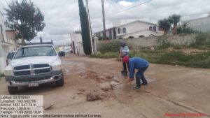 Río Grande, Zac.– El Sistema Municipal de Agua Potable y Alcantarillado de Río Grande (SIMAPARG) informó que este día se trabaja en la reparación de una fuga de agua registrada en la calle Abel Cruz, de la colonia Ruiz Cortines.