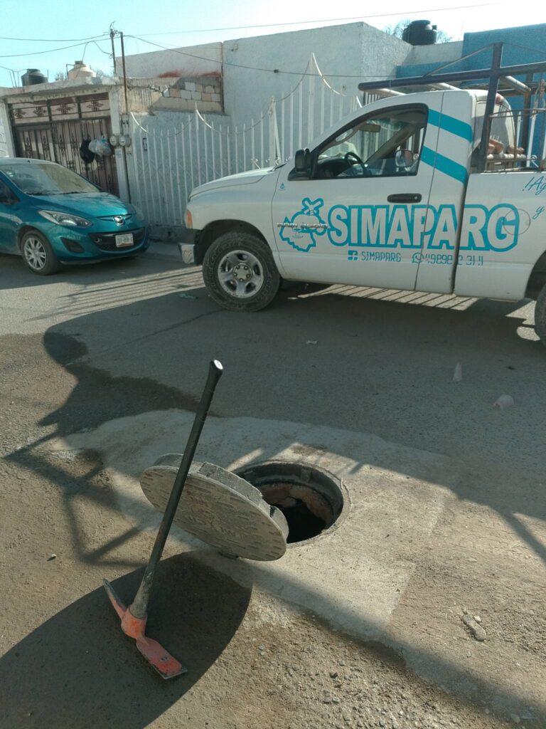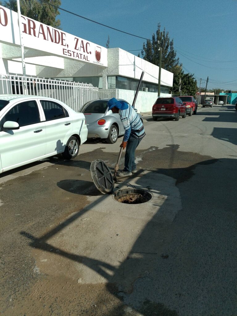 Río Grande, Zac.– El Sistema Municipal de Agua Potable, Alcantarillado y Saneamiento de Río Grande (SIMAPARG) atendió este miércoles un reporte de drenaje tapado en la calle Libertad, colonia Álamos, frente a las instalaciones de la SEC.