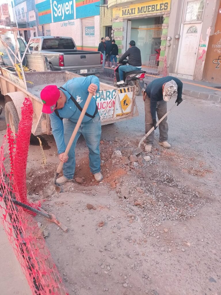 De manera paralela, se llevaron a cabo trabajos de rehabilitación de concreto hidráulico en la calle Hidalgo, en el tramo comprendido entre las calles Aldama y Victoria, como parte de las labores de reposición de la infraestructura urbana afectada por intervenciones en las redes hidráulica y sanitaria.